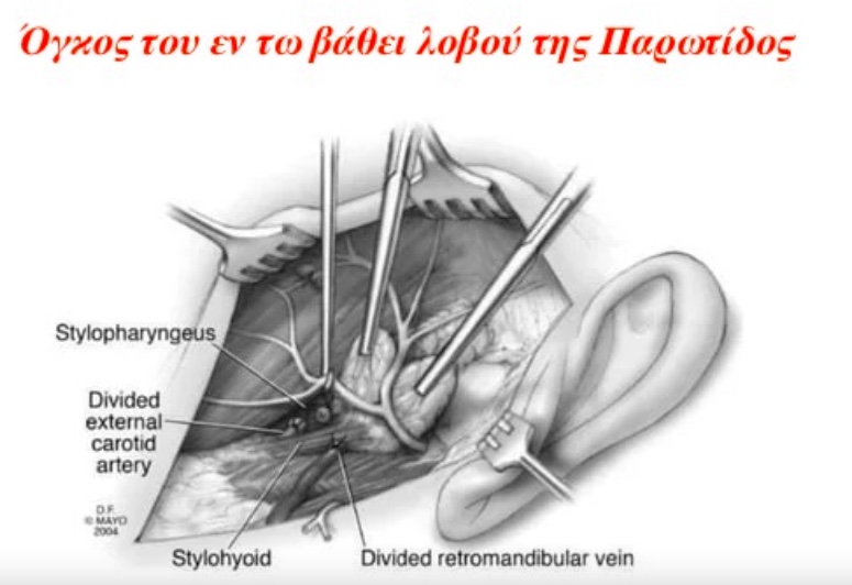Επιπλέον, η οριστική ταυτοποίηση μιας κακοήθους νεοπλασίας της Παρωτίδος, τίθεται με οριστική ιστολογική εξέταση του χειρουργικού παρασκευάσματος στο παθολογοανατομικό εργαστήριο και μάλιστα μπορεί να απαιτηθεί και ανοσοϊστοχημικός έλεγχος. Αυτό σημαίνει ότι σε ένα κακοήθη όγκο Παρωτίδος, του οποίου την οριστική ταυτότητα δεν γνωρίζουμε, και ενώ το πρόσωπο του ασθενούς λειτουργεί φυσιολογικά (δεν εμφανίζει πάρεση ή παράλυση), θα κόψουμε το Προσωπικό νεύρο; Η απάντηση είναι προφανώς όχι. Εάν μείνει υπολειμματική νόσος θα ακολουθήσει μετεγχειρητική ακτινοθεραπεία, ούτως ή άλλως.